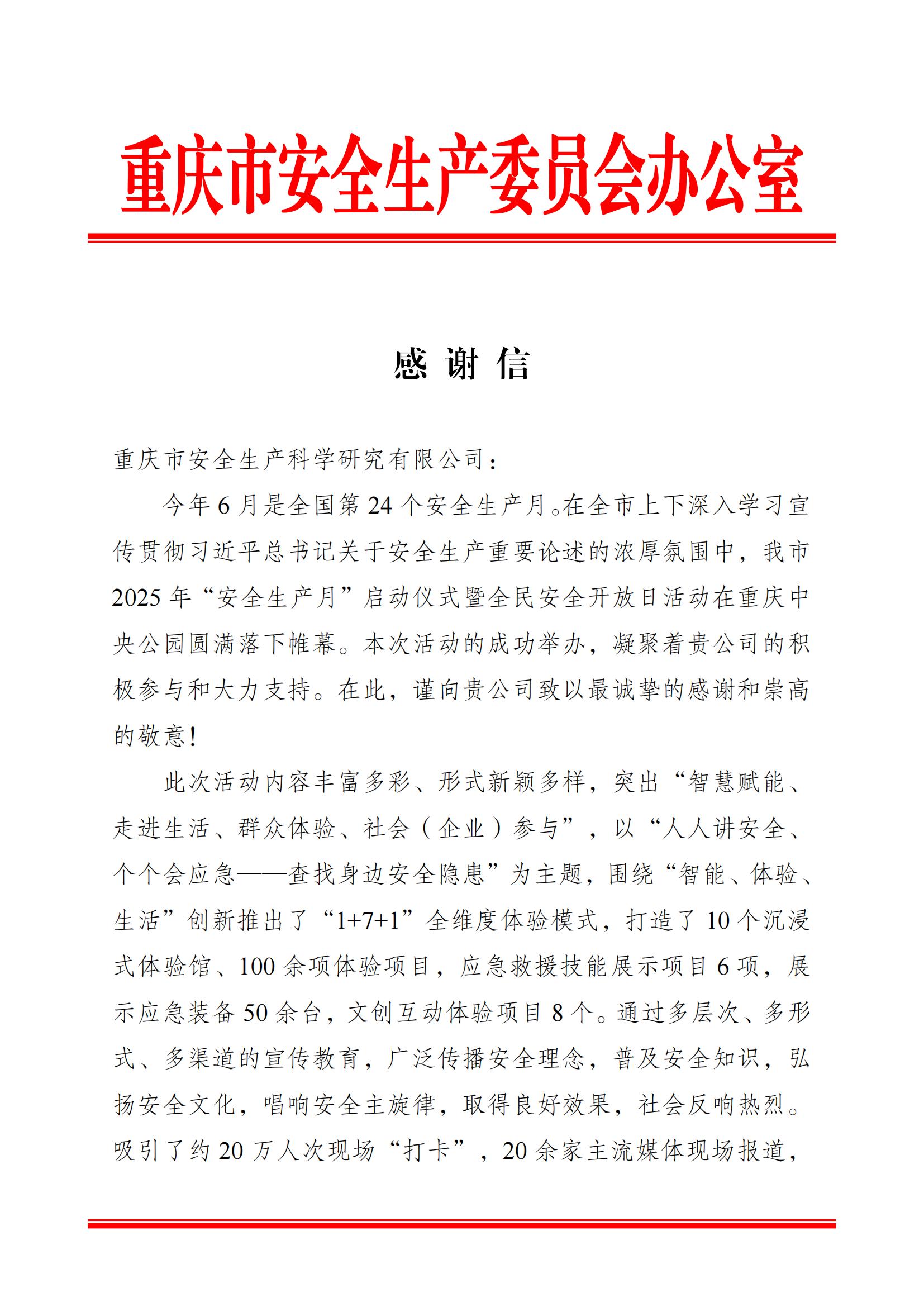 公司以專業(yè)力量助力重慶市“安全生產(chǎn)月”活動(dòng)